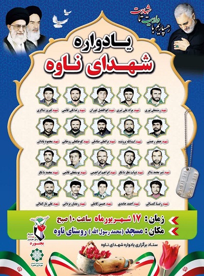 روستای ناوه 20 جوان غیور از جان گذشته را در سالهای دفاع مقدس تقدیم حفاظت از مرزهای خاکی و آرمان های انقلاب اسلامی کرده است.